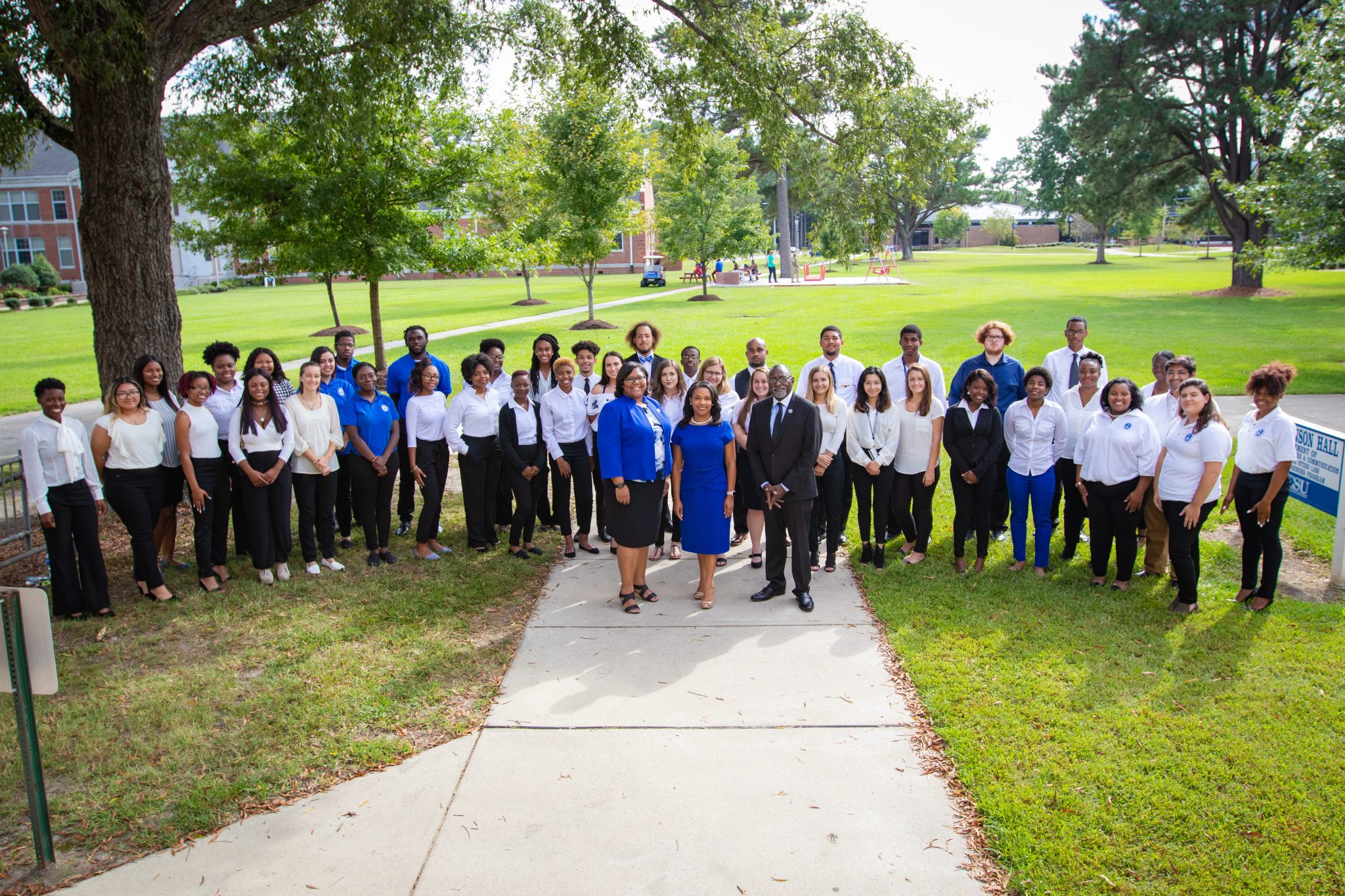 The Elizabeth City State University Honors Program students stand for a photo with, front left to right, Interim Vice Chancellor Dr. Farrah Ward, Interim Chancellor Dr. Karrie Dixon, and Honors Program director, Dr. Kenneth E. Jones. The Elizabeth City State